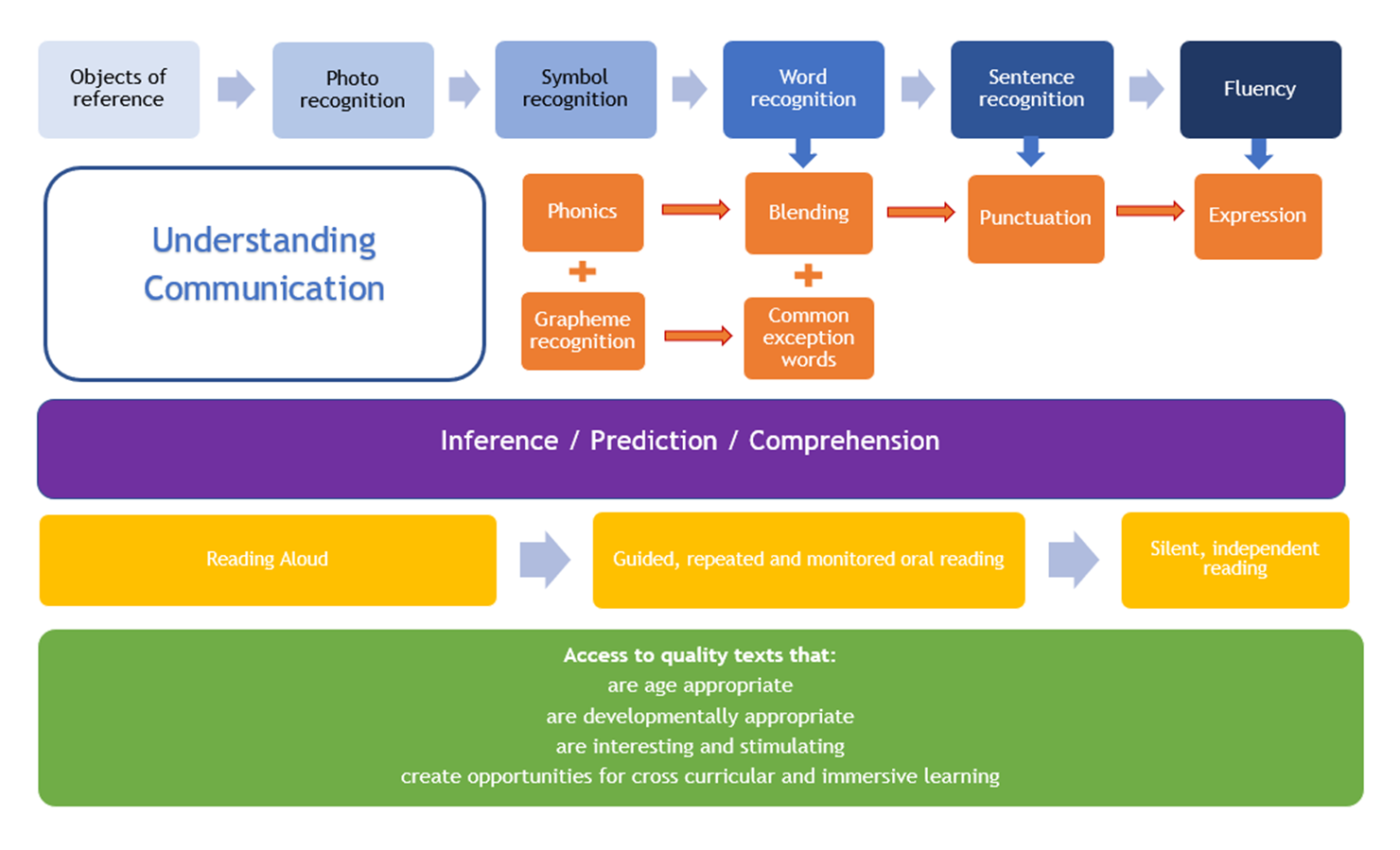 We support all students at all key stages to develop functional reading in line with their developmental point. We recognise that for some students the development of a reading vocabulary will run concurrently with their communication.